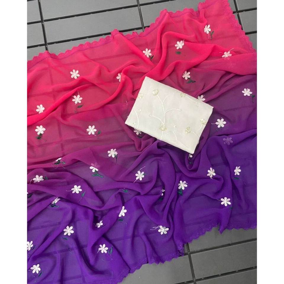DESIGNER GEORGETTE EMBROIDERY WORK SAREE WITH UNSTITCHED BLOUSE PINK