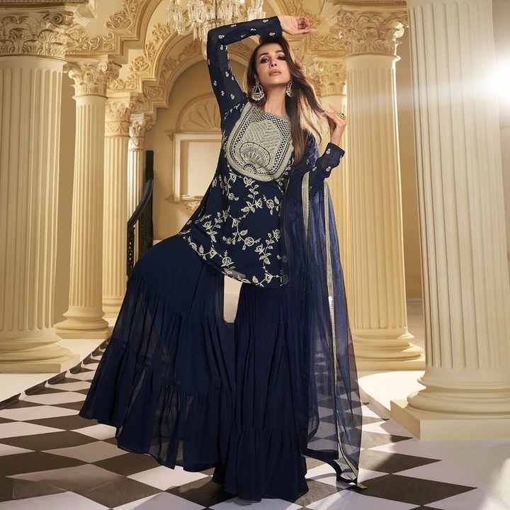 DESIGNER GEORGETTE WITH SEQUENCE EMBROIDERY WORK TOP SHARARA WITH DUPATTA NAVY BLUE