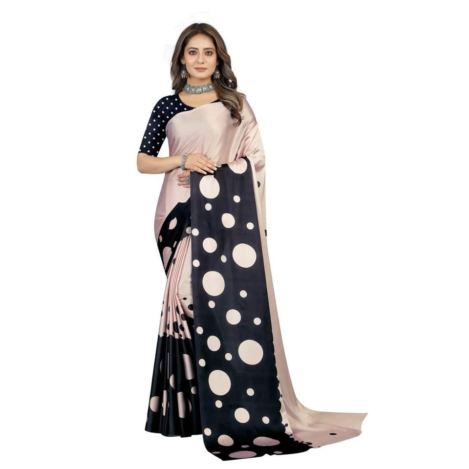 DESIGNER JAPAN CRAPE DIGITAL PRINT WORK SAREE WITH UNSTITCHED BLOUSE PEACH WITH BLACK