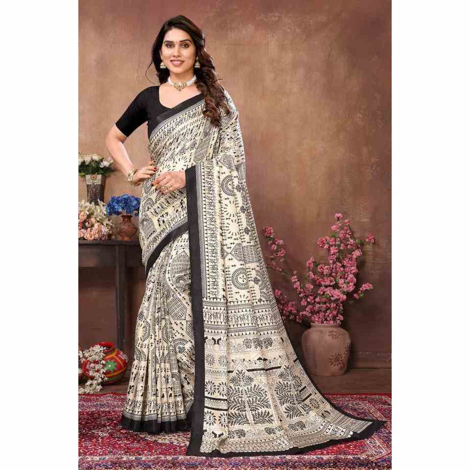 DESIGNER KADI IMPRIMÉ SAREE AVEC BLOUSE NON COUCHÉE NOIR