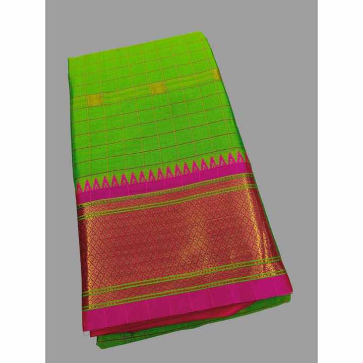 CRÉATEUR LICHI COTON JACQUARD TISSÉ TRAVAIL SAREE AVEC BLOUSE INCOSÉE VERT PERROQUET