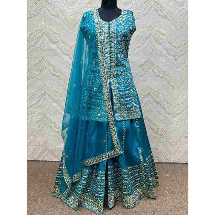 DESIGNER MONO SILK EMBROIDERY SEQUENCE WORK TOP PALAZZO WITH DUPATTA SKY