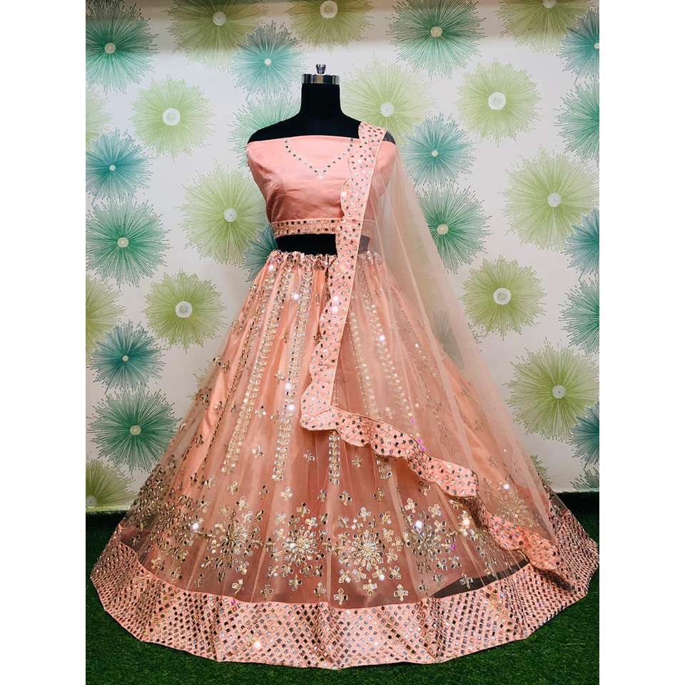 FILET DE BRODERIE MIROIR TRAVAIL LEHENGA CHOLI AVEC DUPATTA PEACH