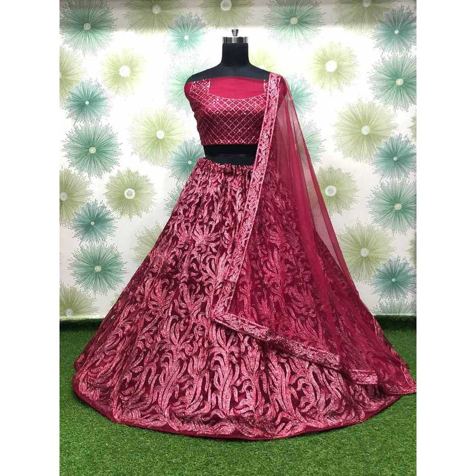 FILET DE CRÉATEUR EN SOIE BRODERIE TRAVAIL LEHENGA CHOLI AVEC DUPATTA ROUGE