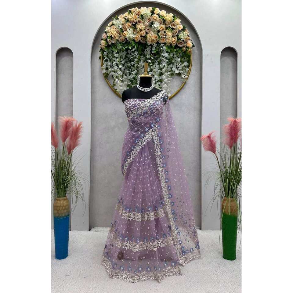 FIL DE FILET DE CRÉATEUR ET SEQUENCE DE TRAVAIL SAREE AVEC CHEMISIER NON COUDU LAVANDE