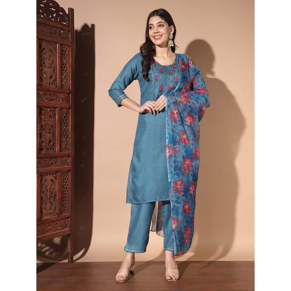 DESIGNER ORGANZA EMBROIDERY SEQUENCE WORK TOP BOTTOM WITH DIGITAL PRINT DUPATTA BLUE