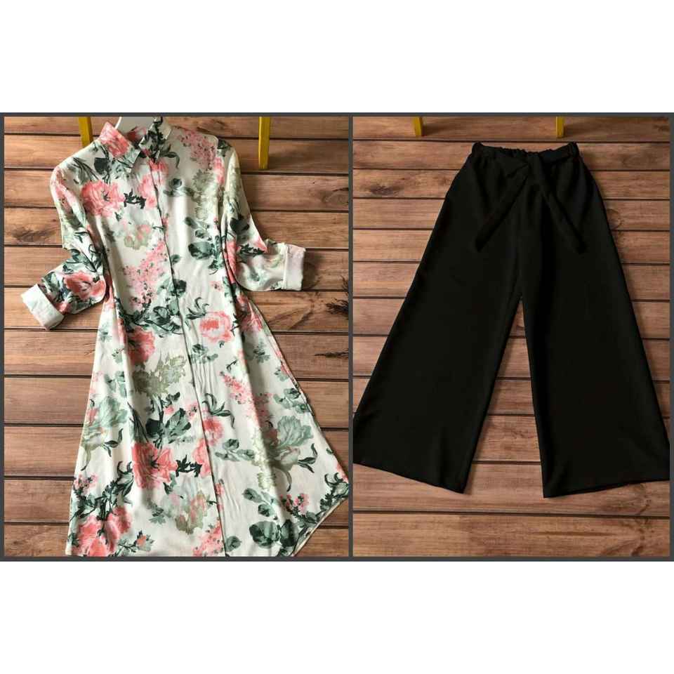 DESIGNER RAYON IMPRIMÉ NUMÉRIQUE TOP DE TRAVAIL PALAZZO NOIR
