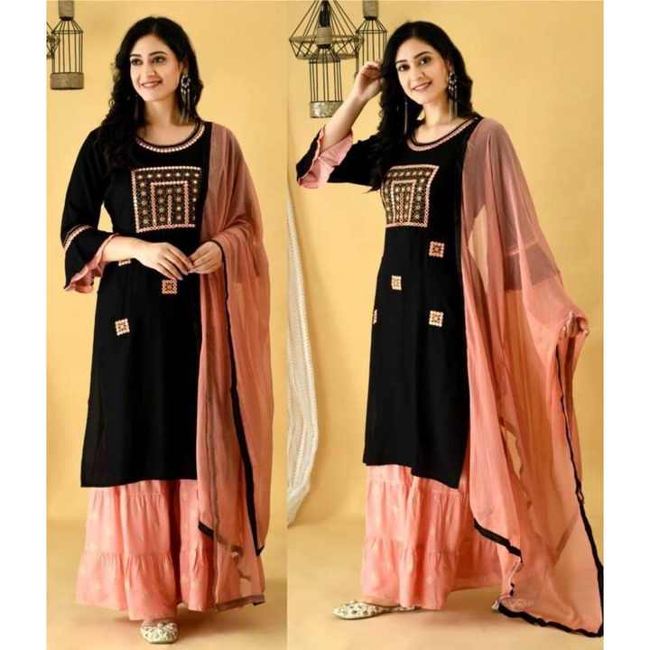 DESIGNER RAYON BRODERIE AVEC PAPIER MIROIR TRAVAIL TOP SHARARA AVEC DUPATTA