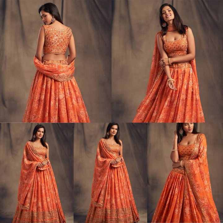 DESIGNER SOFT ORGANZA AVEC IMPRESSION NUMÉRIQUE AVEC BRODERIE LOURDE JARI SEQUENCE WORK LEHENGA CHOLI AVEC DUPATTA ORANGE