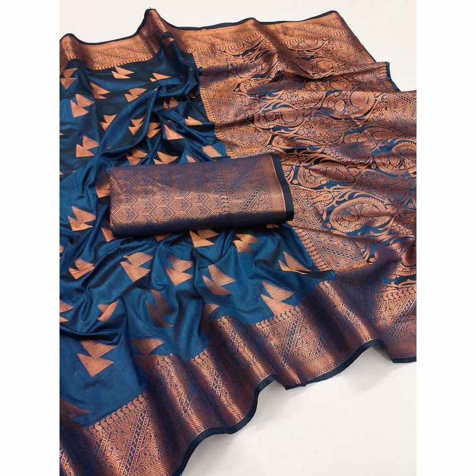 DESIGNER SOIE DOUCE CUIVRE JARI TISSAGE TRAVAIL SAREE AVEC CHEMISIER INCOSÉ MORPEACH