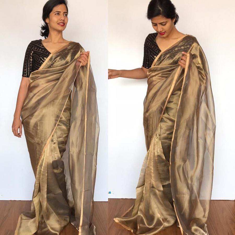 DESIGNER TISSUE SILK GOLD ZARI BORDER WORK SAREE WITH UNSTITCHED BOLUSE GOLD