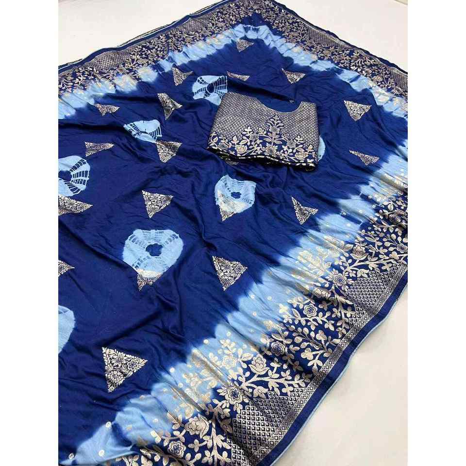 DESIGNER VISCOSE SILK JACQUARD WEAVING WORK SAREE WITH UNSTITCHED BLOUSE BLUE