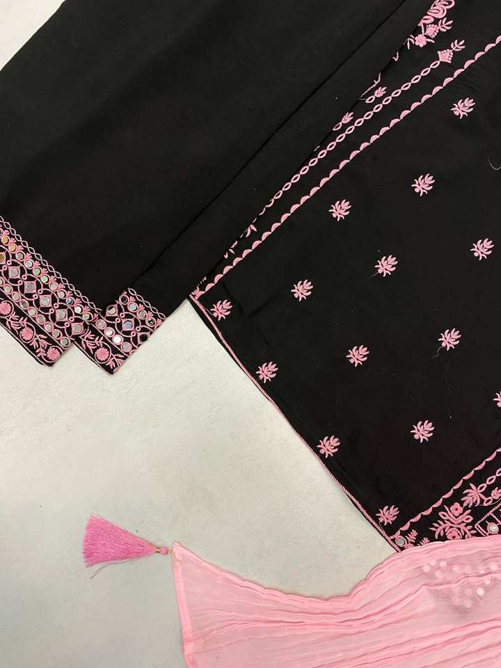 DESIGNER WEAR EXCLUSIVE SUIT IN EMBROIDERED WITH REAL MIRROR WORKED ROMAN SILK FABRIC TOP AND PANT WITH DUPATTA PAIR