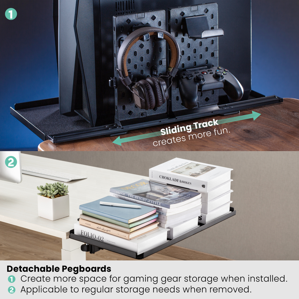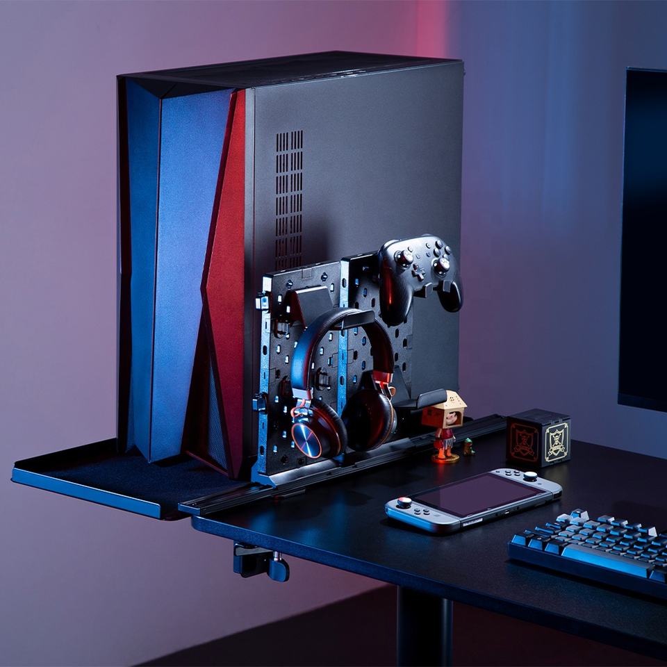 DET-2 plateaux d'extension de bureau en métal avec panneau perforé, rangement de bureau de jeu, organisateur de bureau, Table de gestion, panneau de cheville