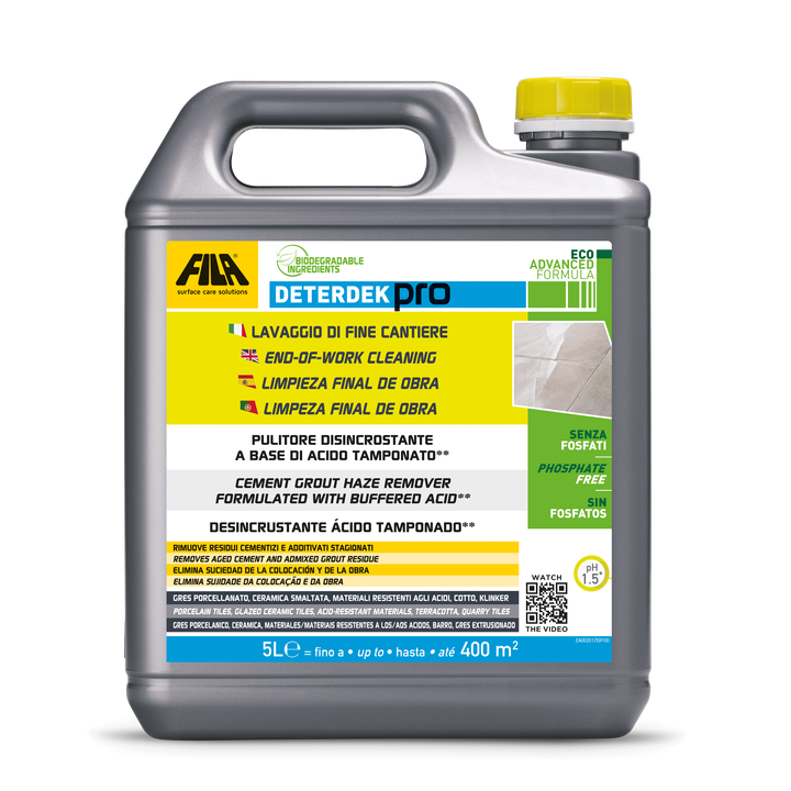 DETERDEK PRO Nettoyant liquide acide multifonction à faible odeur pour sols, détartrant et antirouille, sans danger pour les métaux, la terre cuite et les carrières