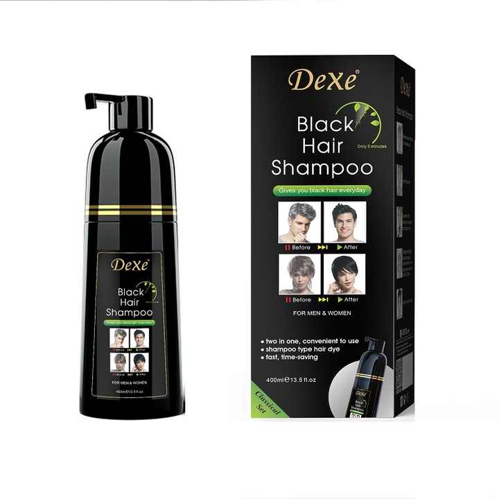 Shampooing Colorant DEXE Sans Ammoniaque et Sans PPD, Herbal Naturel, Couleur Cheveux Brun Foncé Noir, Couverture Rapide des Cheveux Gris/Blancs pour Hommes, Femmes, Usage Domicile