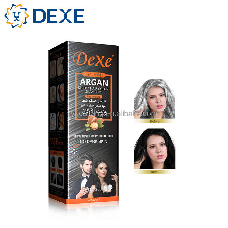 Shampoo colorant capillaire rapide à l'huile d'argan personnalisé DEXE Cinema Private Label, colorant capillaire noir rapide, shampooing pour cheveux blancs à noirs