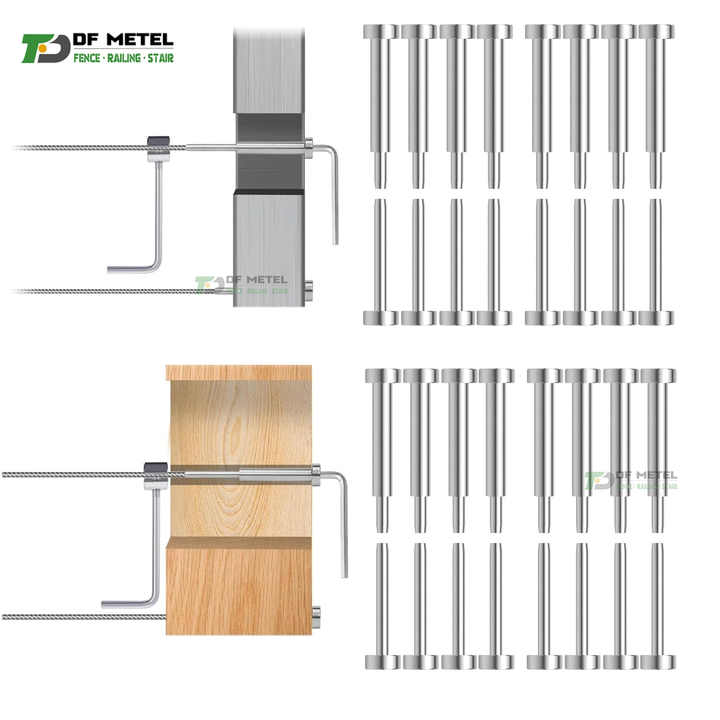 DF 3/16 "1/8" Kit de matériel de garde-corps de câble en acier inoxydable 304/316 pour pont bois métal poste sertissage goujon fil gréement Terminal