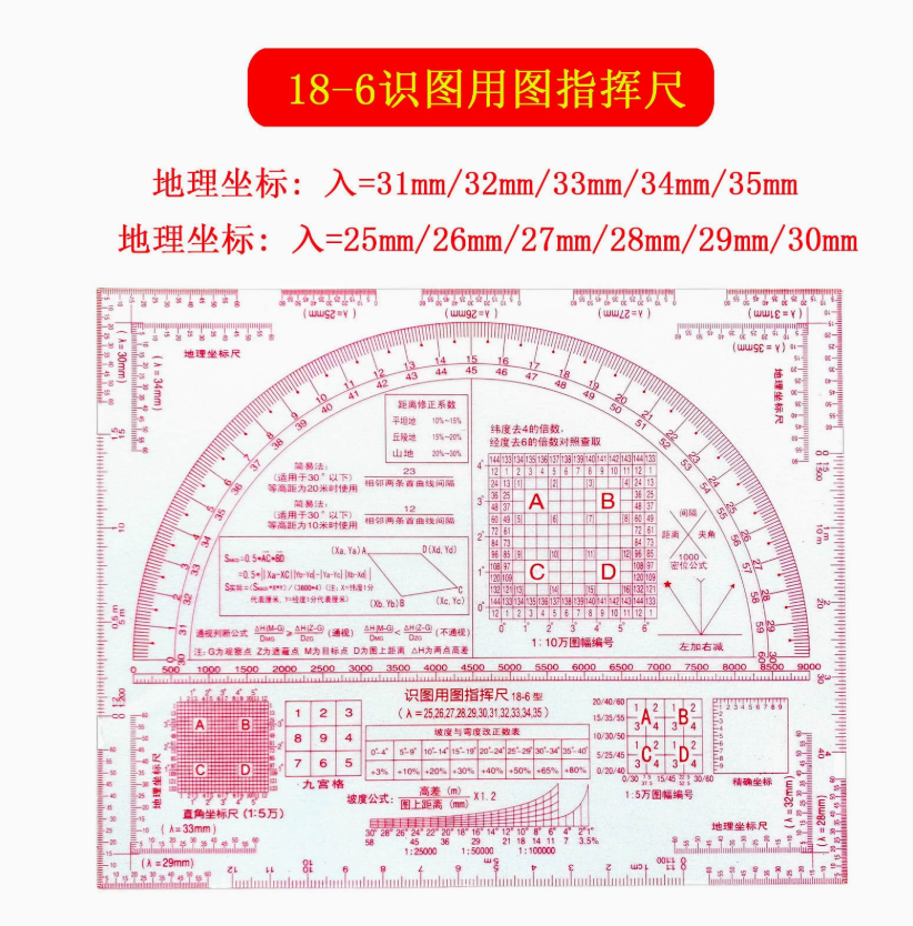 Règle de reconnaissance graphique et de commande multifonctionnelle bicolore DF 81, avec une échelle de coordonnées géographiques de 1:50 000