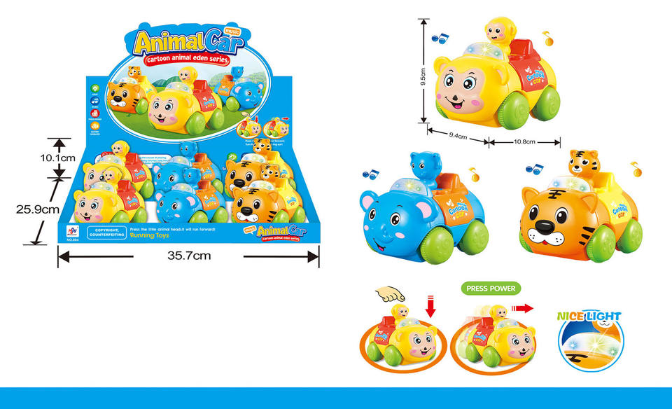 Description:Dessin animé animal eden voiture avec lumière et musique