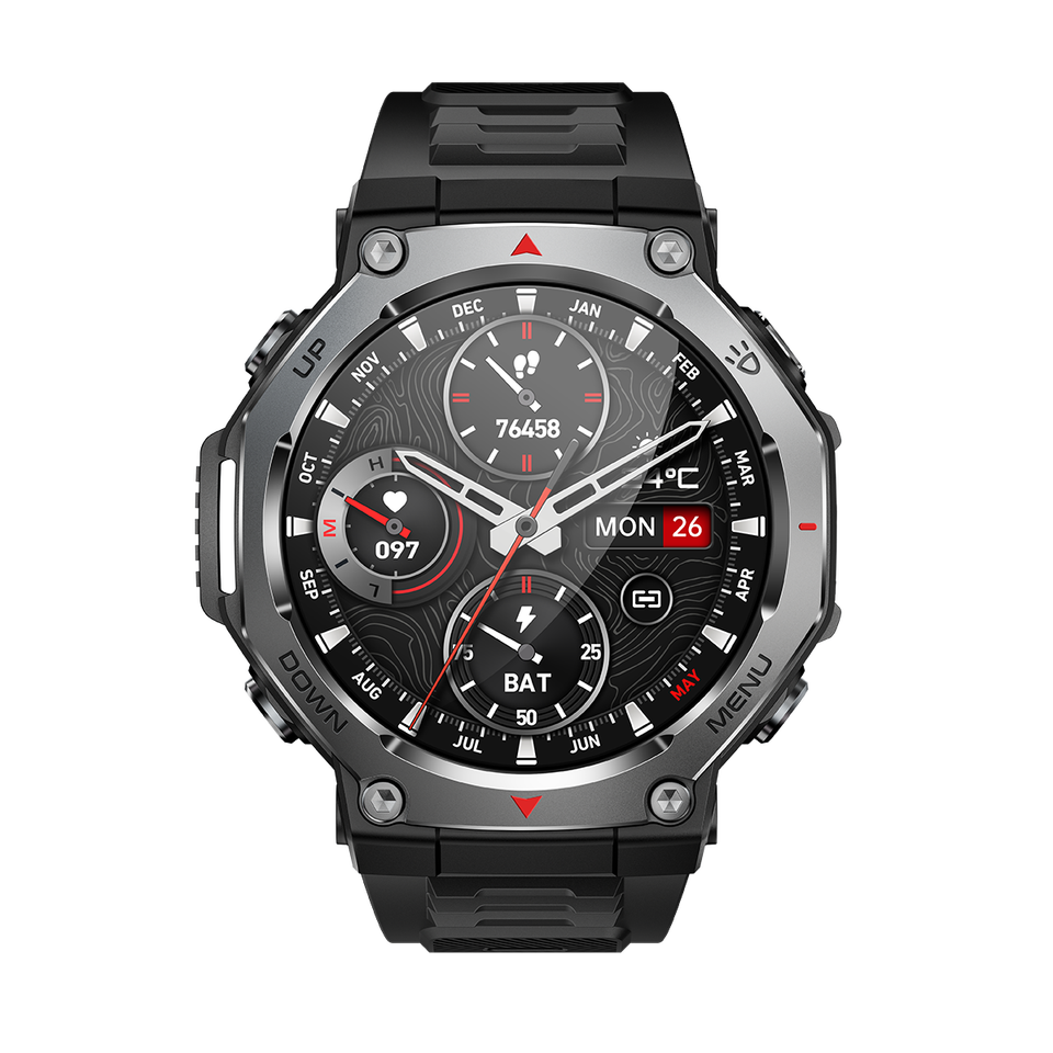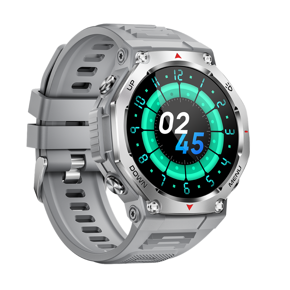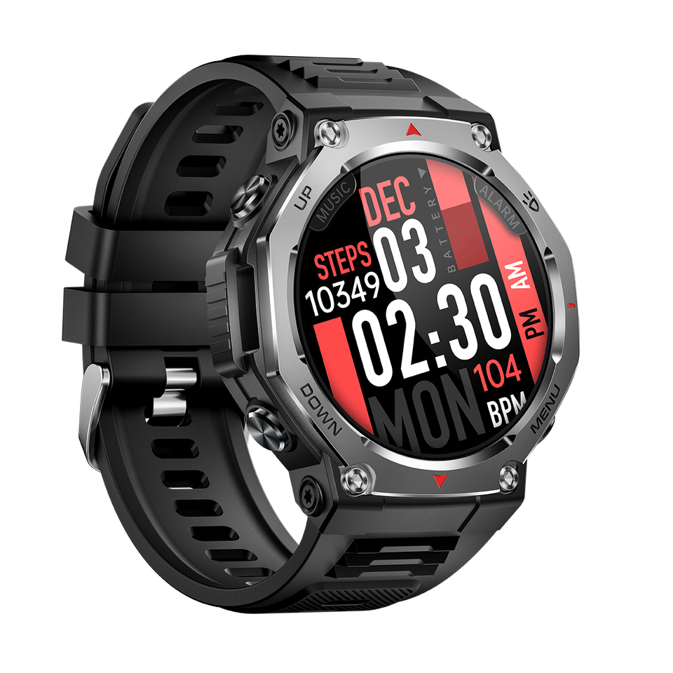 Montre connectée DF KT85 avec écran AMOLED, lampe torche puissante, étanche 5ATM, bracelet en silicone, appels Bluetooth, application de suivi d'activité
