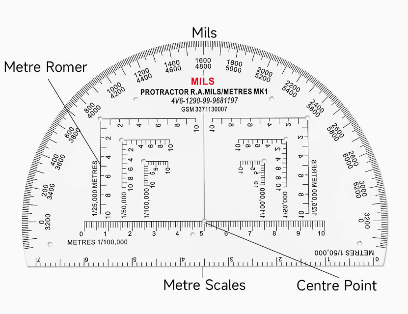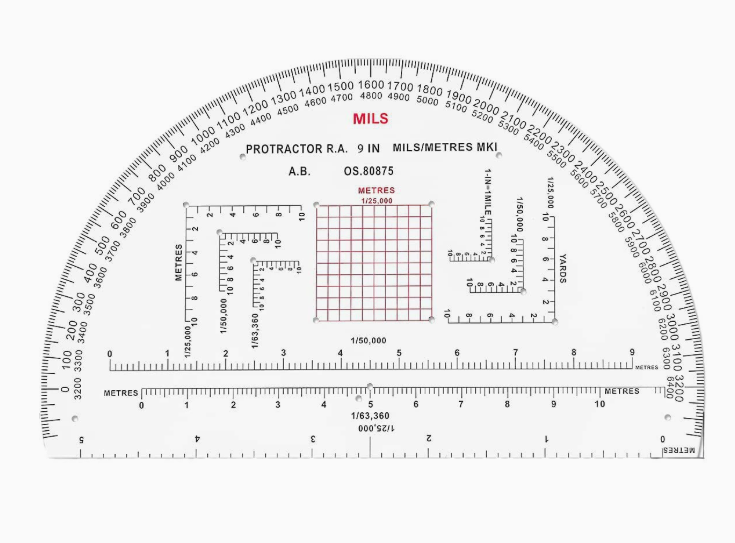 DF MP-1 Rapporteur de cartographie semi-circulaire de 6 pouces en plastique rigide professionnel MILS pour la lecture de cartes, vente en gros