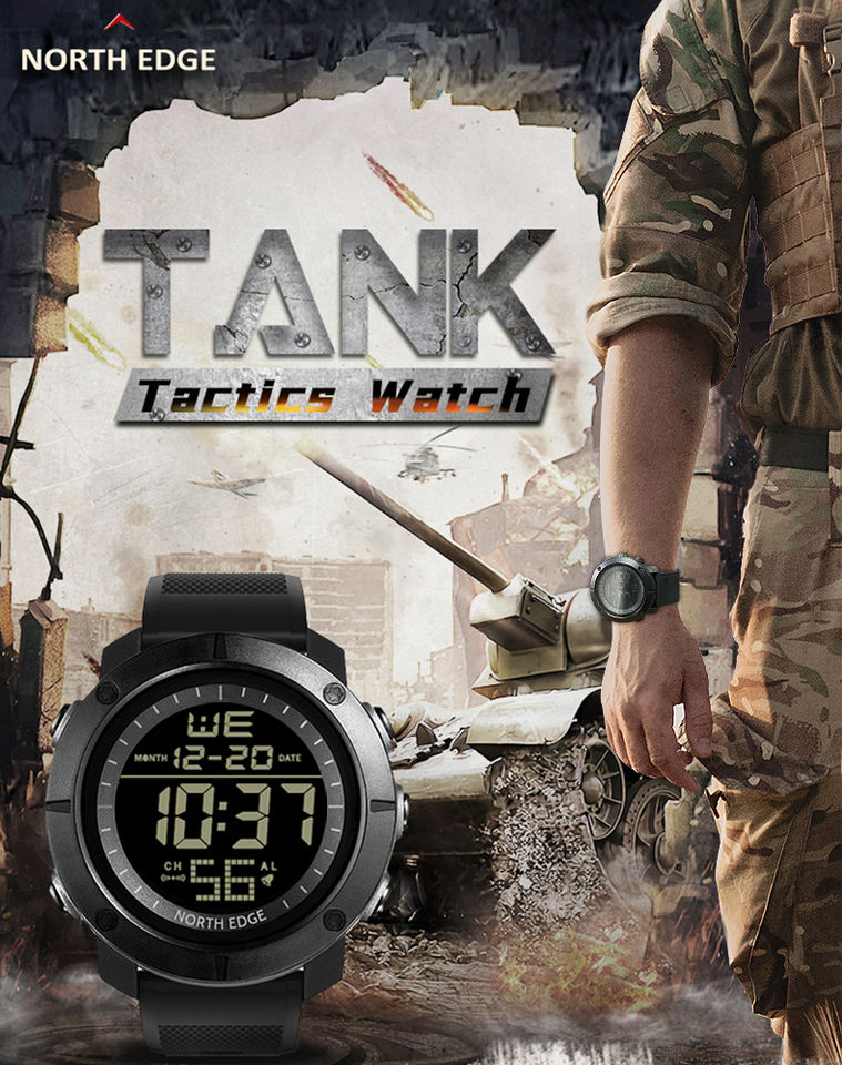 Montres de sport numériques pour hommes DF NORTH EDGE TANK, chronographe intelligent, étanches, tactiques, avec alarme lumineuse, écran de 1,55 pouce