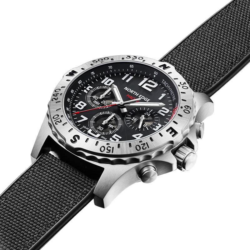 Montre solaire DF North Edge MACH 2 pour homme, style business décontracté, quartz, verre minéral, acier inoxydable, chronographe à 3 aiguilles, sports de plein air