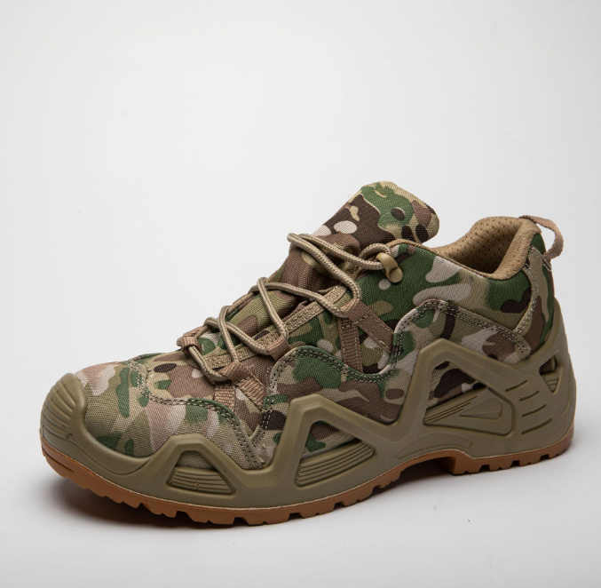 DFA0115 FG CP Camo Bottes de chasse et chaussures de randonnée personnalisées, camouflage vert Ruines CP, vert, kaki, noir, coupe basse