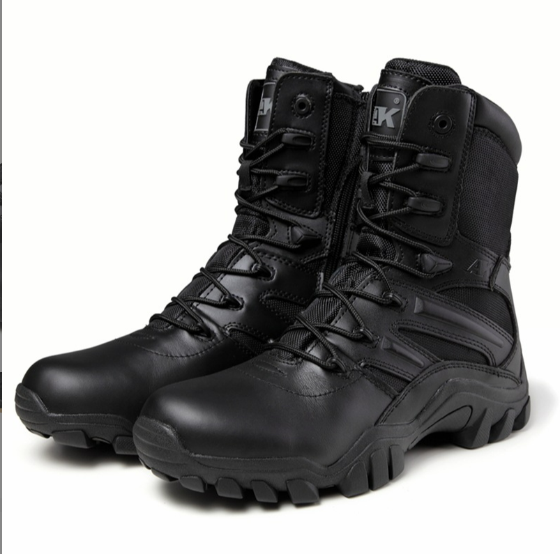 Bottes tactiques en cuir noir DFA6 personnalisées de haute qualité pour agents de sécurité