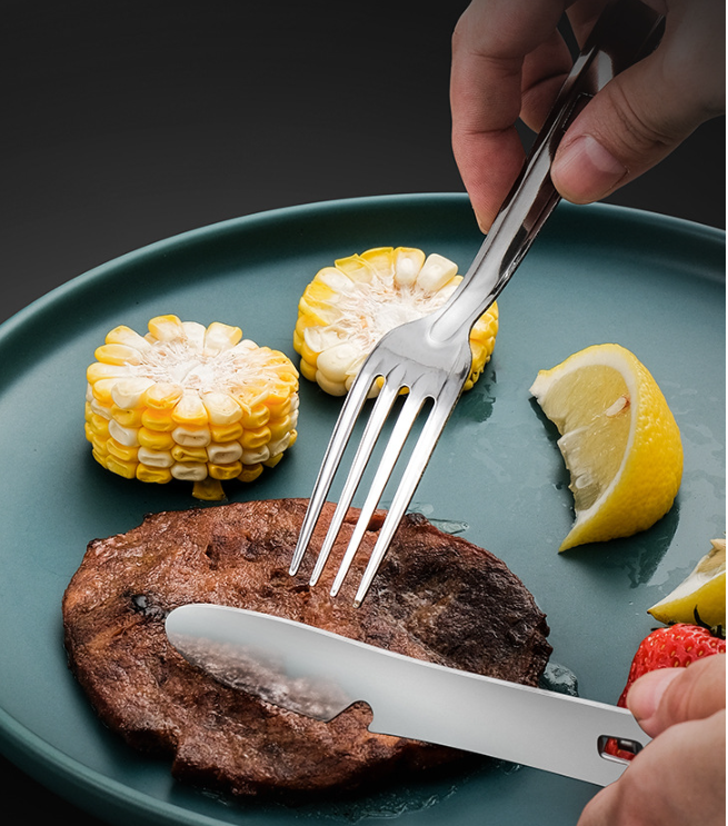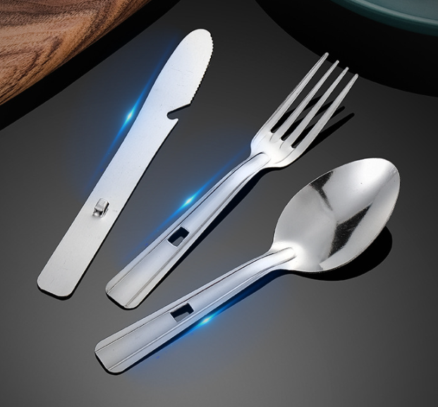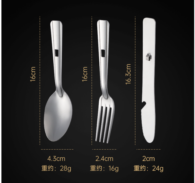 DFC01 Kit de 3 pièces en acier inoxydable pour le camping en plein air : fourchette, couteau, cuillère et ouvre-boîte à bière