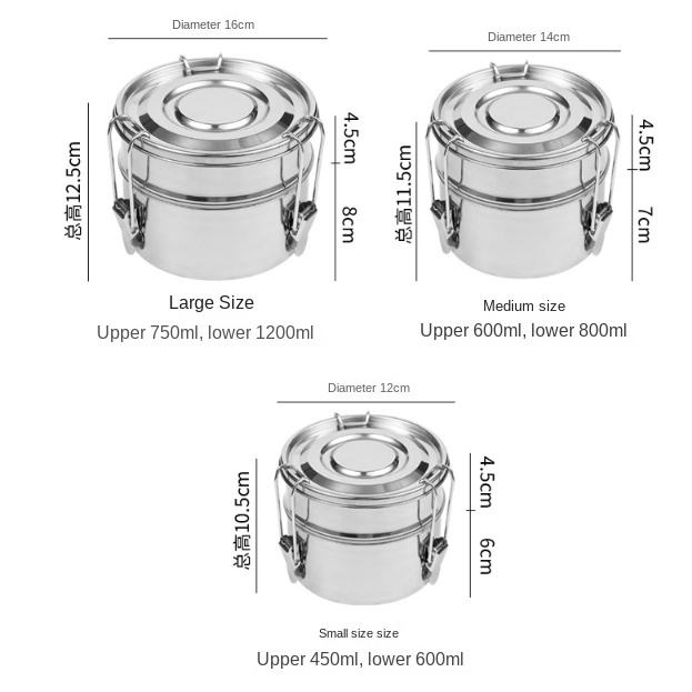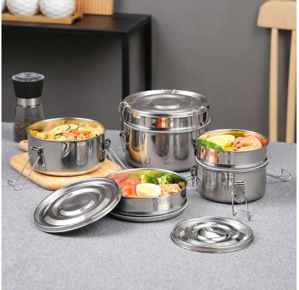 DFL01 Boîte à bento ronde portable scellée en acier inoxydable, récipient alimentaire en métal, boîte à lunch pour étudiants et adultes