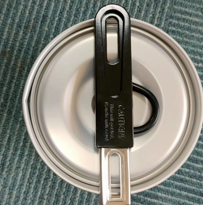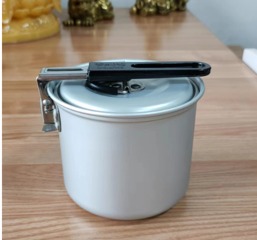 DFP1011 Marmite de camping portable en aluminium gris noir oxydé personnalisée, pot de camping, chauffe-lait domestique avec support pliable