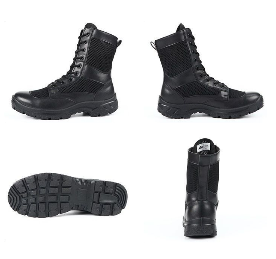 Bottes de combat tactiques noires mi-montantes en cuir pour homme DFS01, idéales pour l'extérieur, la randonnée et l'entraînement, avec embout de sécurité en acier