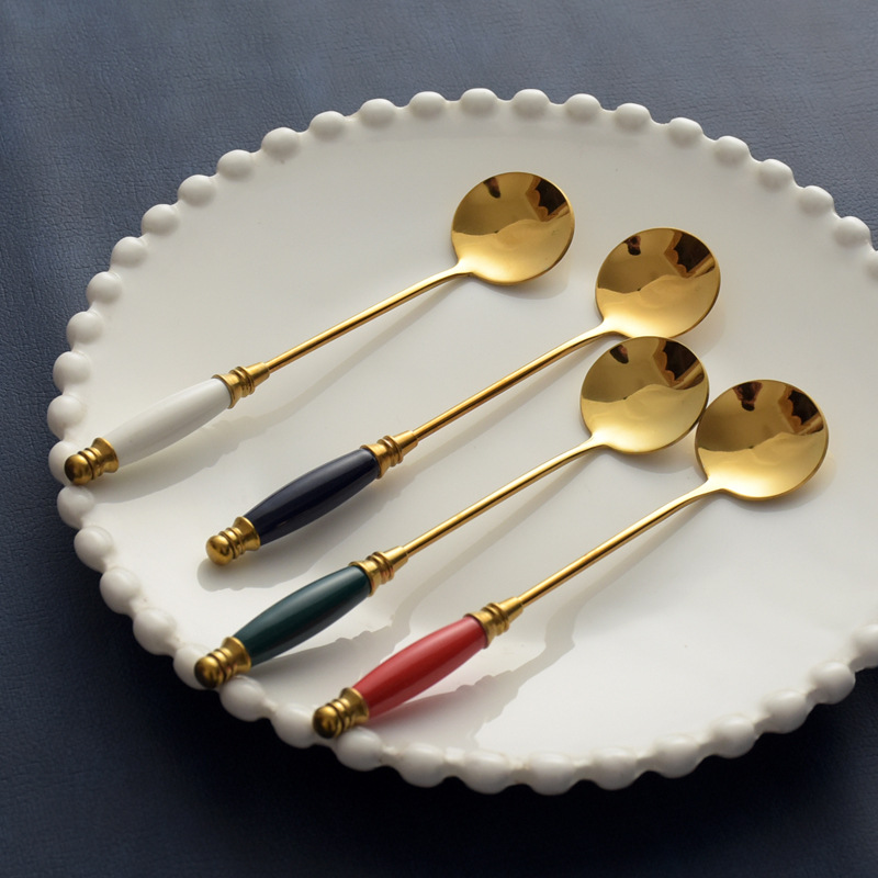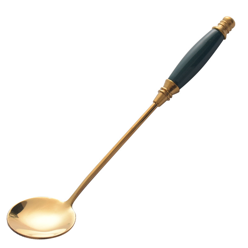 Cuillère de service de qualité supérieure DFS0329 pour restaurant, manche en bois émaillé, couleur argent, meilleur outil pour buffet, Chine Hunan