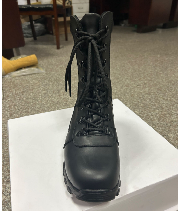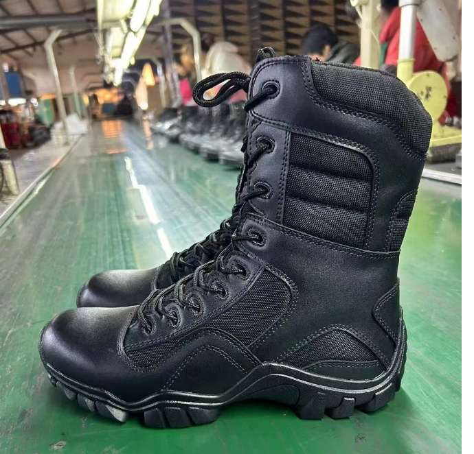 Bottes tactiques pour hommes en cuir pleine fleur noir personnalisées DFS12