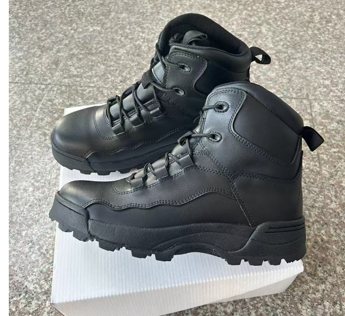 Bottes tactiques de sécurité pour hommes en cuir pleine fleur noir personnalisées DFS12, bottes de randonnée, de chasse et de montagne à la cheville