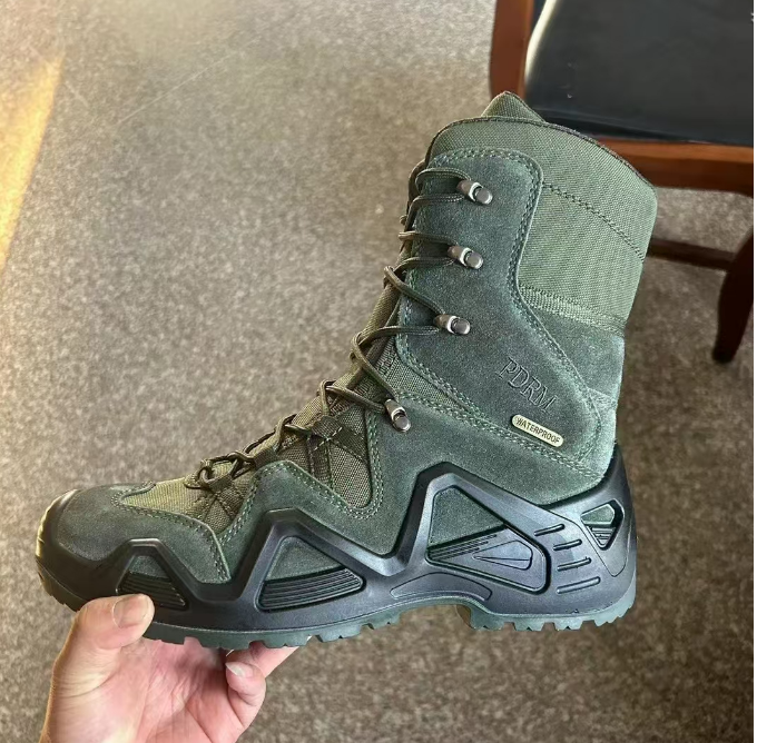 Bottes tactiques longues en cuir pleine fleur personnalisées DFS16, haute qualité, bottes de randonnée tactiques PDRM, hauteur cheville
