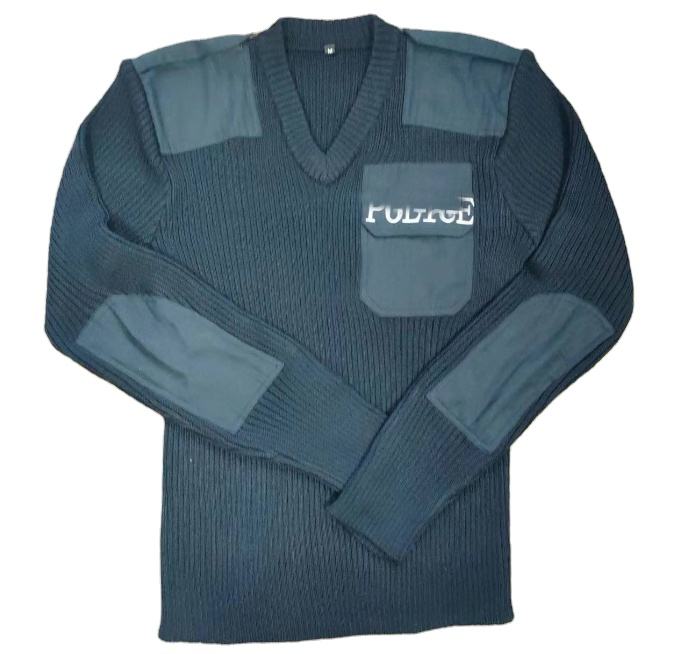 DFW0217 Pulls tactiques en laine (30%) et acrylique (70%) bleu marine foncé, uniformes avec logo brodé et poche poitrine