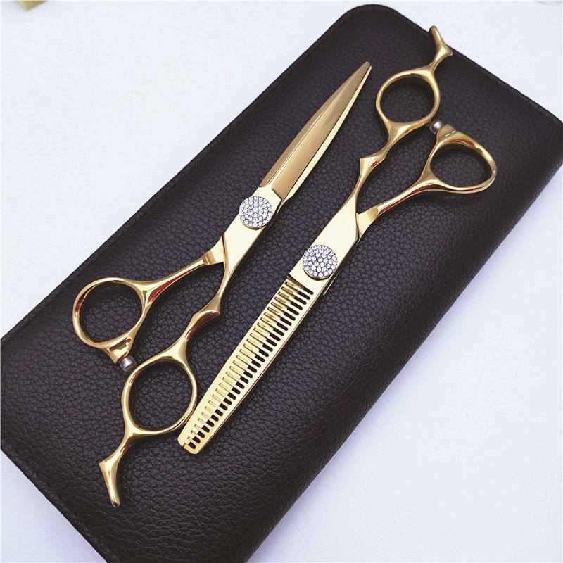 Ciseaux de coiffure DG 6,0 pouces, ciseaux à effiler dorés avec vis ciel étoilé pour usage esthétique, pour droitiers