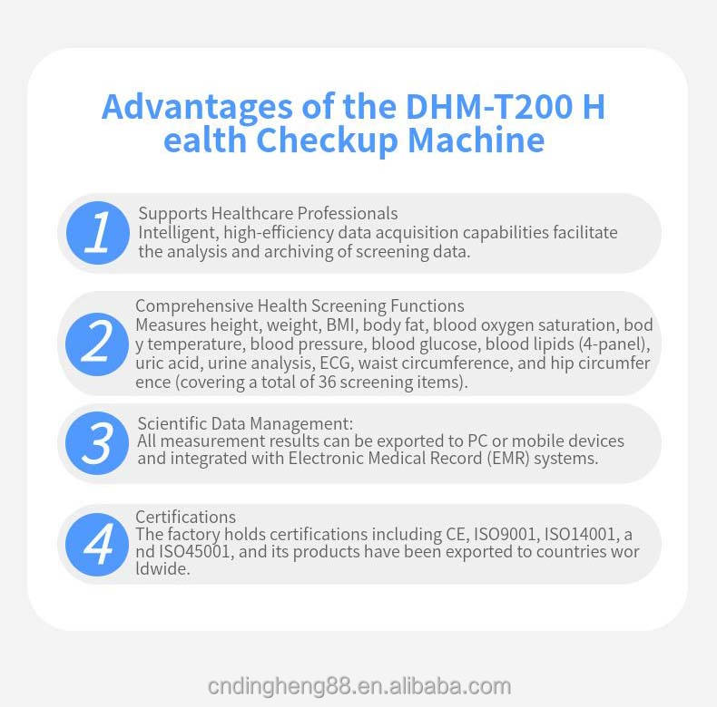 Machine de contrôle de santé intelligente DHM-T200, écran tactile LCD HD 21,5 pouces, précision de 0,1 kg, mesure la graisse corporelle, l'hydratation et la masse musculaire