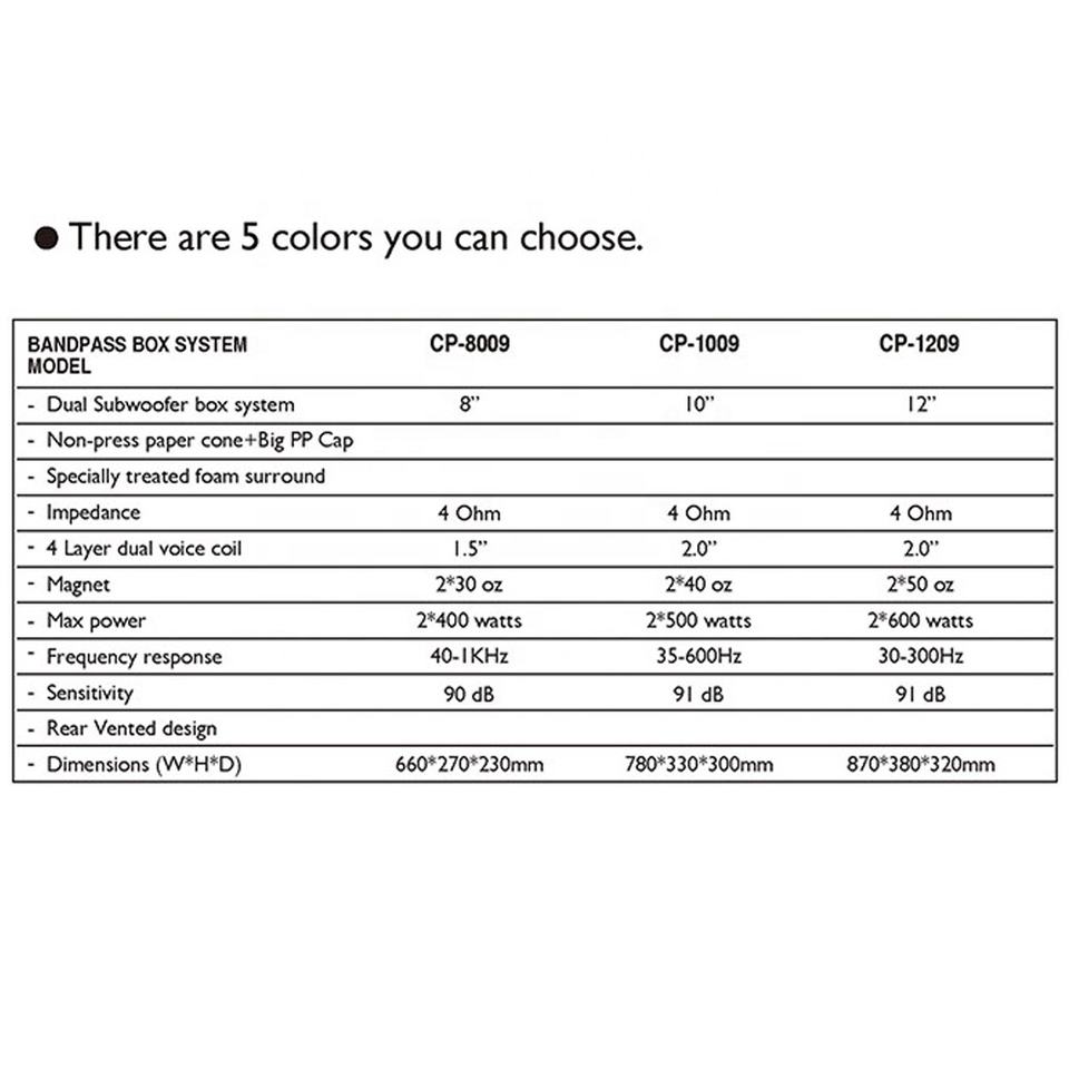DIBEISI Vente en gros personnalisée (jamais en détail) Boîte à double caisson de basses Système audio de voiture Caisson de basses Haut-parleur Boîtes de voiture 8/10/12 pouces CP1209