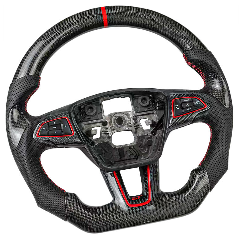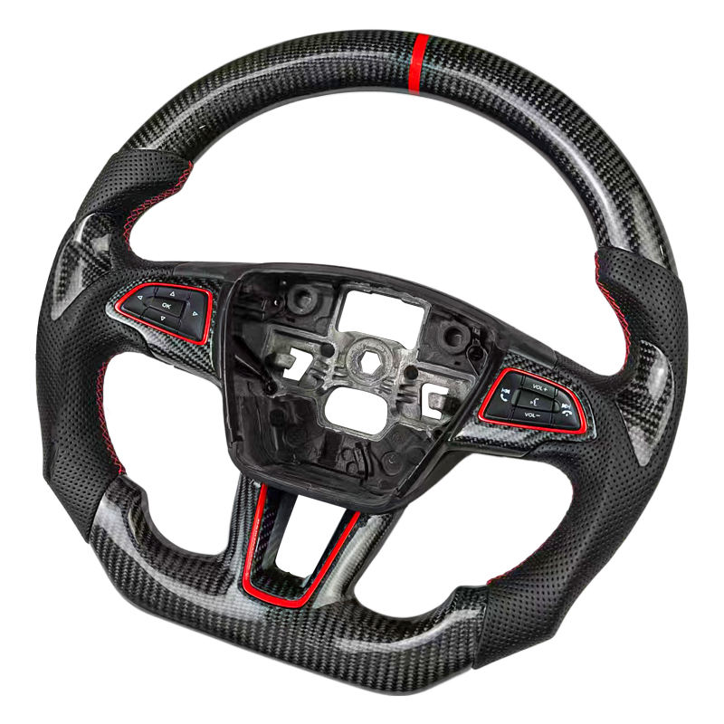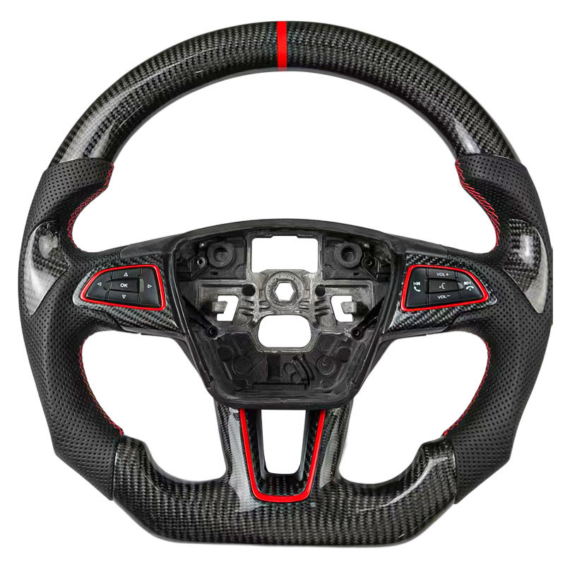 Volant sport DINGNUO personnalisé 2015-2018 pour Focus MK3 RS en fibre de carbone et cuir perforé, design sportif, 3 branches, 35 mm