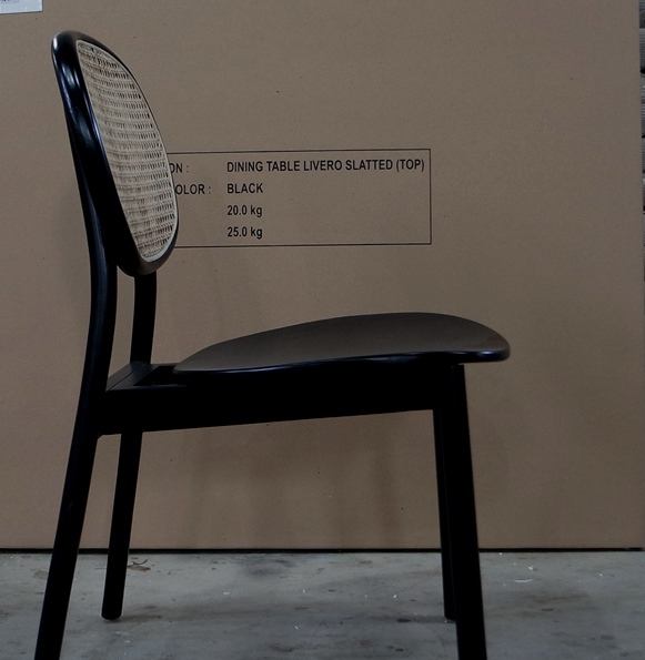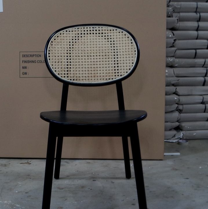 Chaise de salle à manger en bois de mindi avec dossier en rotin
