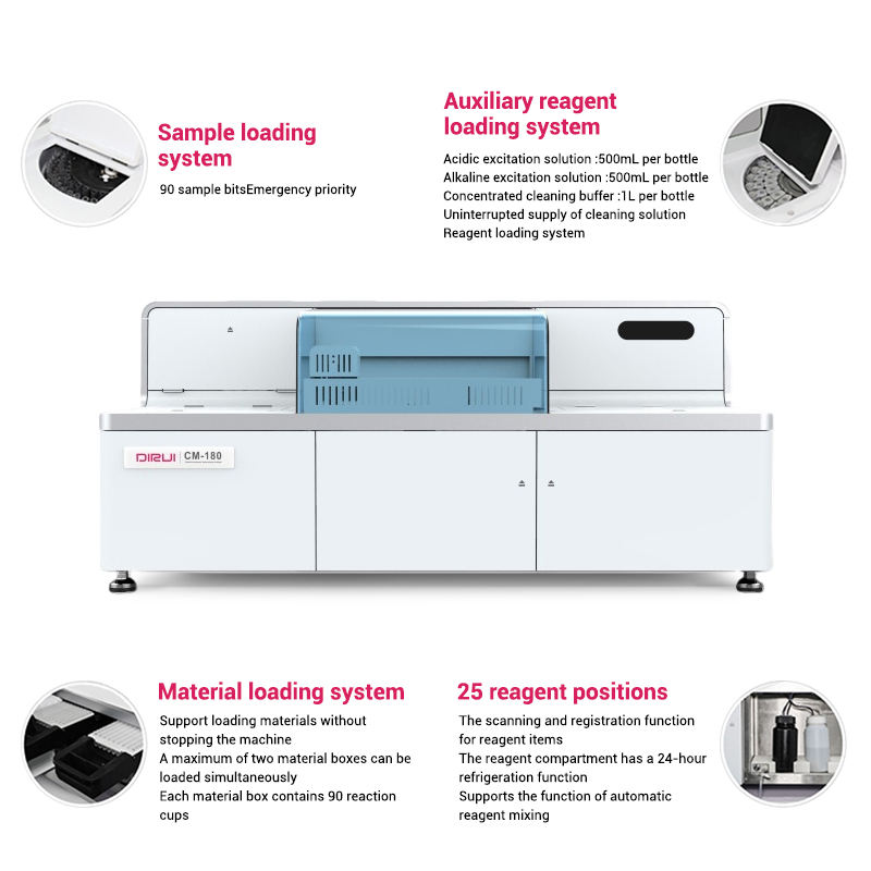Analyseur d'immunoessais chimiluminescents automatique DIRUI CM-180 de classe II à haut débit pour la détection d'hormones en laboratoire