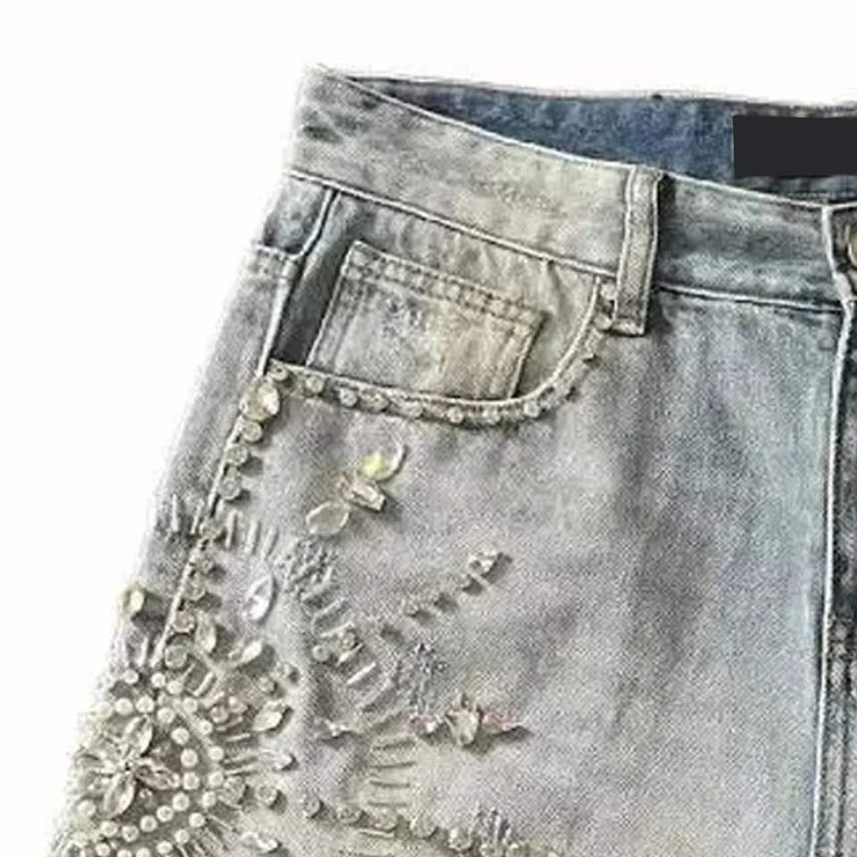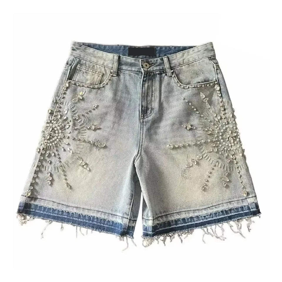 DISCOVER-IMPEX 2026 Short en jean brodé pour homme, délavage clair, ourlet effiloché, style urbain estival