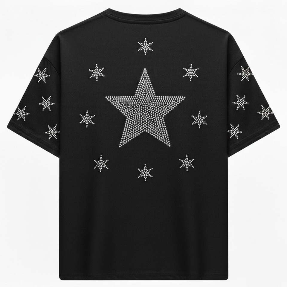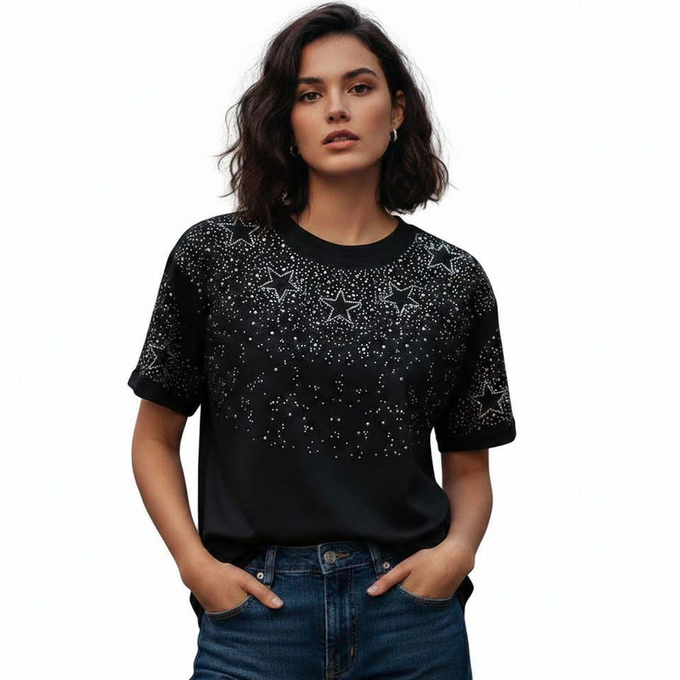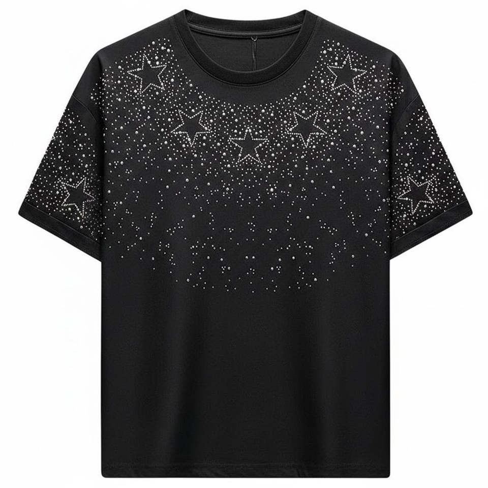 DISCOVER-IMPEX 2026 T-shirt noir pour homme avec étoile en strass, haut de gamme orné de cristaux, style streetwear décontracté et tendance