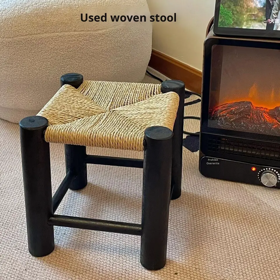 Repose-pieds ottoman moderne et portable en corde de papier et bois DISHI pour chambre, hôpital, hôtel, entrepôt, parc, salon
