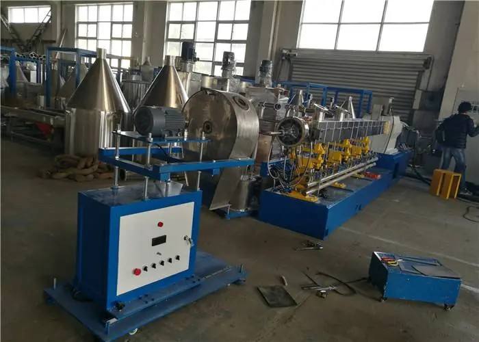 Machine extrudeuse à double vis à commande interlock DIVINE MACHINERY SOLUTION pour la granulation de PS/ABS, capacité 50 kg/h, avec roulement de moteur
