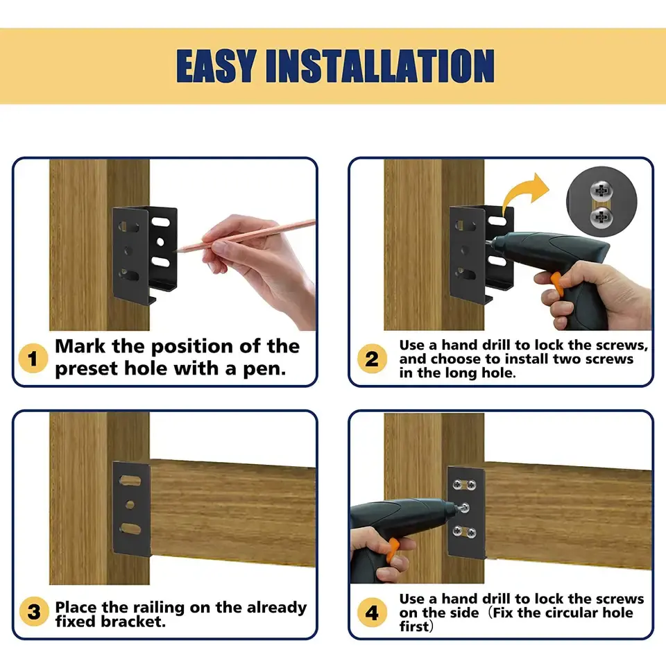 Connecteurs de supports de garde-corps de pergola de pont de bricolage 2x4 pour connecteur de poutre de poteau en bois de garde-corps
